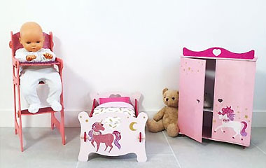 Votre petite fille aime jouer à la poupée ? Offrez-lui des meubles de poupée à monter ou à décorer de la boutique Décorez-moi. Notre gamme de petits meubles en bois faciles à décorer va ravir et amuser votre enfant. Voilà aussi une occasion de faire évoluer sa créativité, et peut-être d’éveiller sa passion pour la décoration. Nous avons également des articles pour les petits garçons, comme les coffrets de sable à modeler permettant une activité créative et divertissante. Les enfants pourront mouler facilement leurs dessins préférés dans le sable tout en restant à la maison.